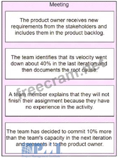 Question 704: At a meeting, the project manager for an agile project indic...