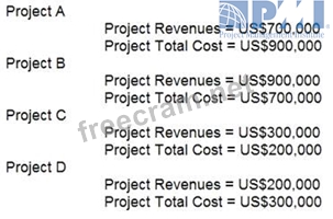 A program manager has four projects pending approval. Senior management asks the program manager to identify a project for potential elimination based on the return on investment. The program manager has the following information to guide and support the decision: