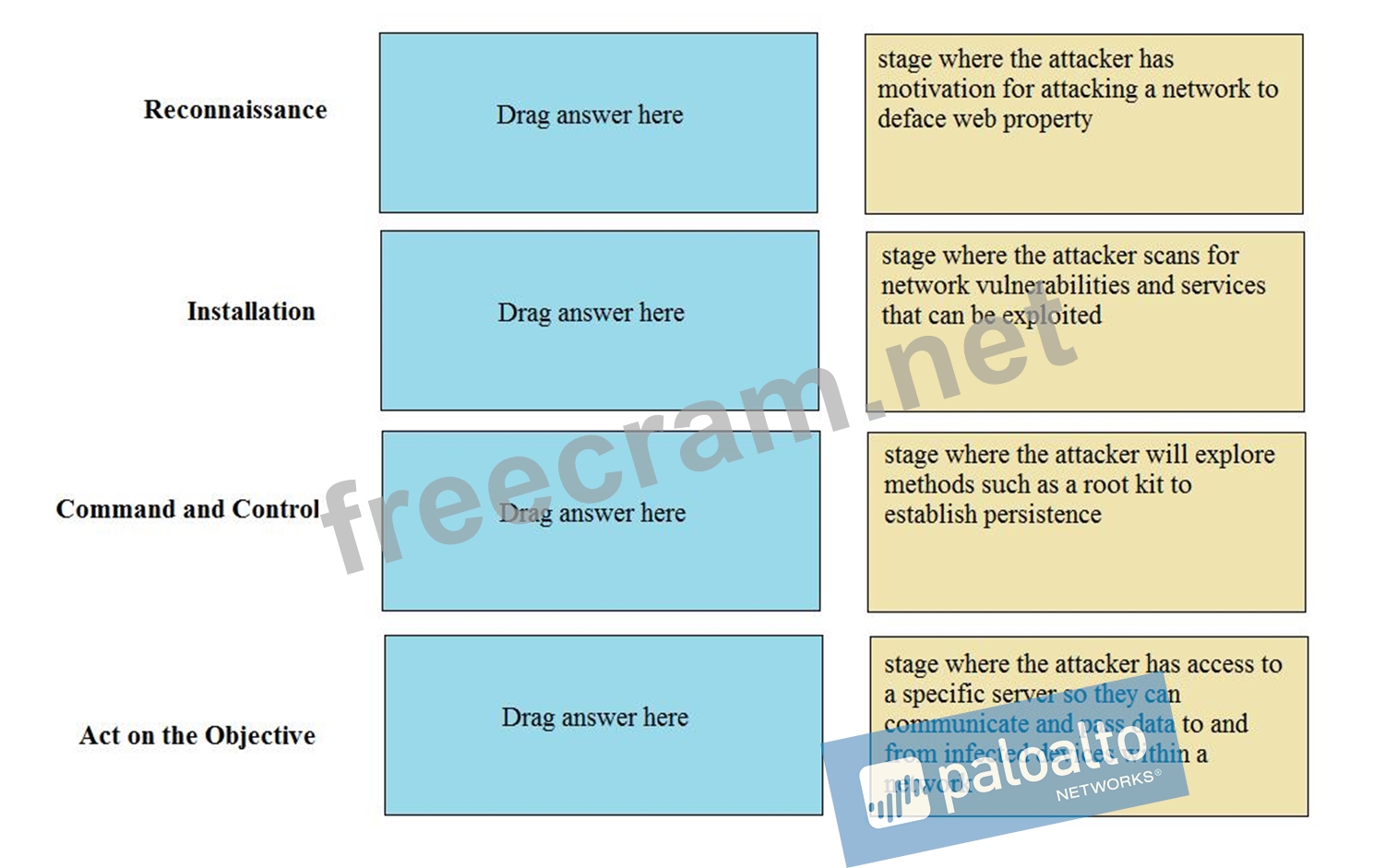 Match the Cyber-Attack Lifecycle stage to its correct description.