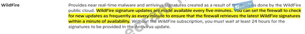 What in the minimum frequency for which you can configure the firewall too check for new wildfire antivirus signatures?
