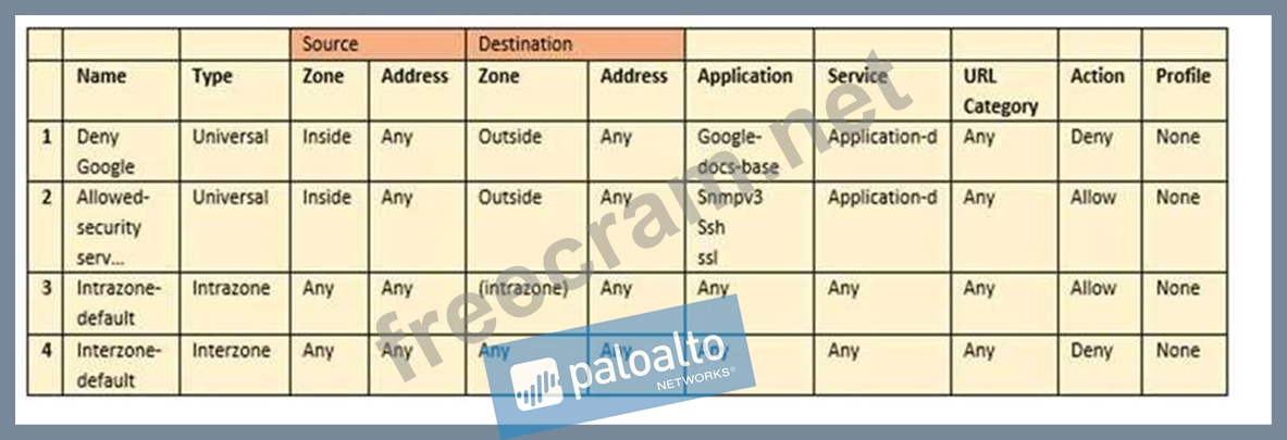 Question 5: Based on the security policy rules shown, ssh will be allowe...