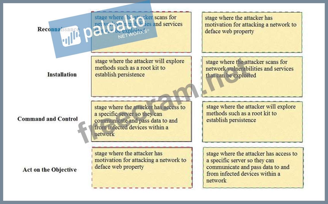 Question 29: Match the Cyber-Attack Lifecycle stage to its correct descri...