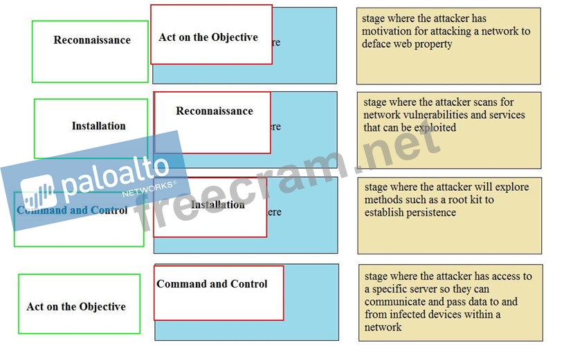 Question 28: Match the Cyber-Attack Lifecycle stage to its correct descri...