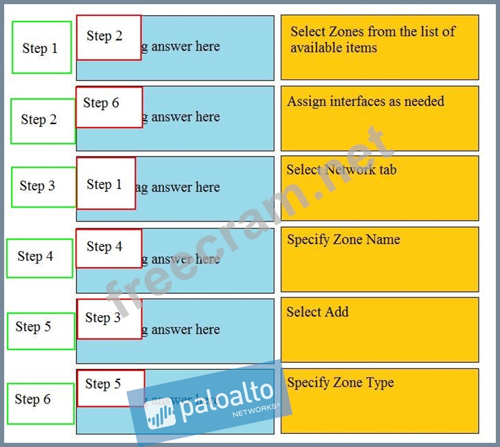 Order the steps needed to create a new security zone with a Palo Alto Networks firewall.