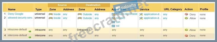 Question 36: Based on the security policy rules shown, ssh will be allowe...