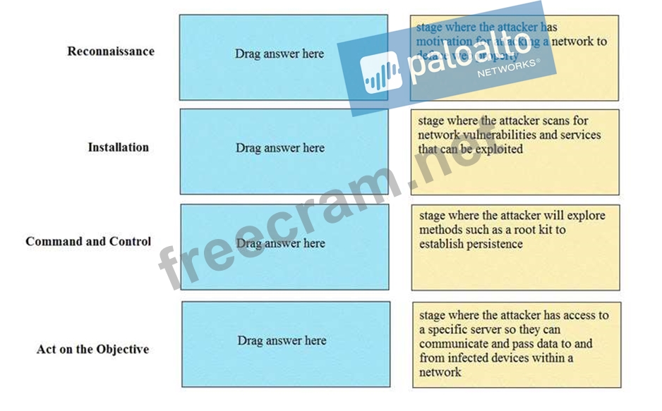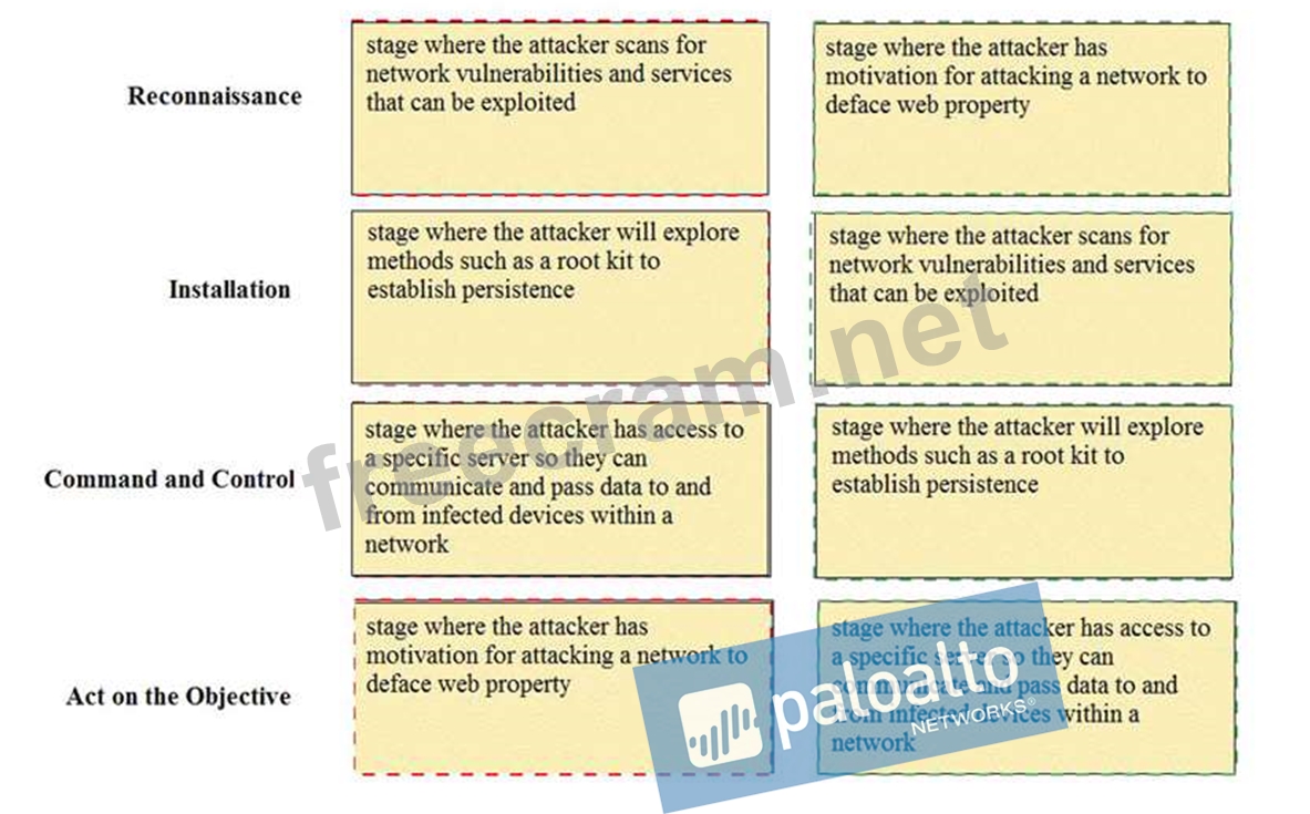 Question 225: Match the cyber-attack lifecycle stage to its correct descri...