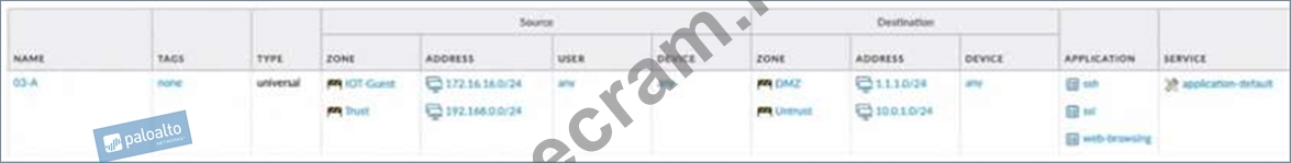 Question 36: Based on the security policy rules shown, ssh will be allowe...
