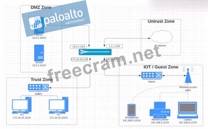 Question 91: Given the topology, which zone type should interface E1/1 be...