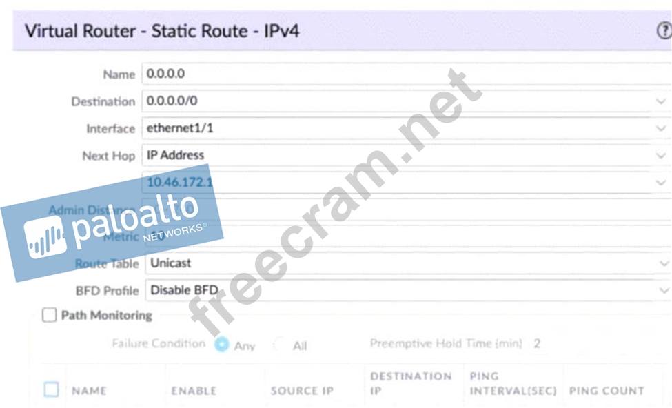 Question 128: When creating a Source NAT policy, which entry in the Transl...