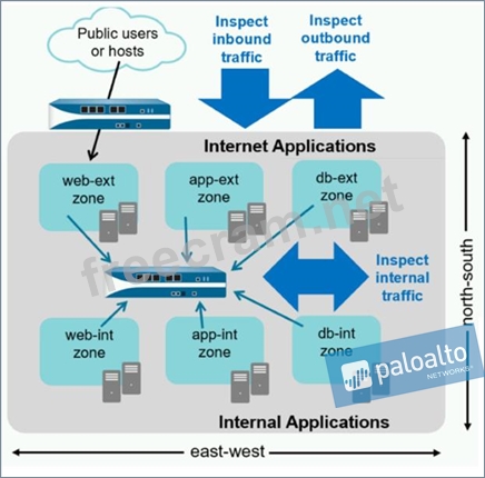 An administrator notices that protection is needed for traffic within the network due to malicious lateral movement activity. Based on the image shown, which traffic would the administrator need to monitor and block to mitigate the malicious activity?
