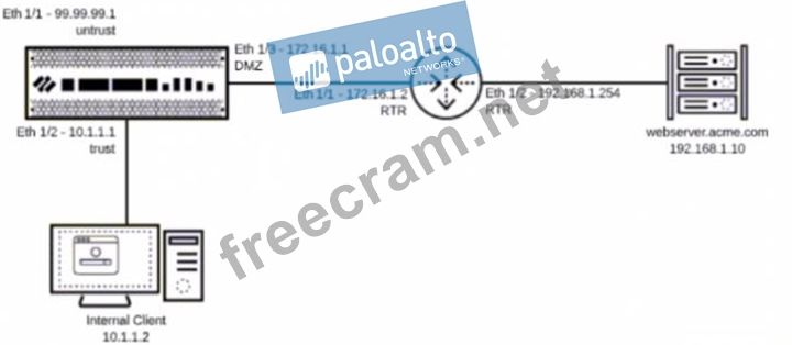 Question 142: Refer to the exhibit. A web server in the DMZ is being mappe...