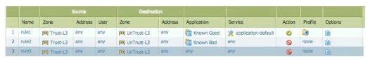 A company has a policy that denies all applications it classifies as bad and permits only application it classifies as good. The firewall administrator created the following security policy on the company's firewall.