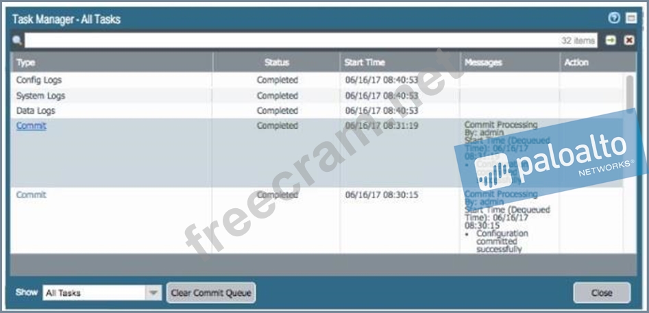 Which two options could the administrator use to verify the progress or success of that commit task? (Choose two.)