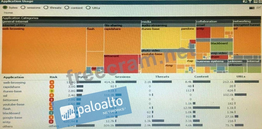 Question 41: A session in the Traffic log is reporting the application as...