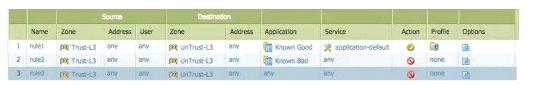 A company has a policy that denies all applications it classifies as bad and permits only application it classifies as good. The firewall administrator created the following security policy on the company's firewall.