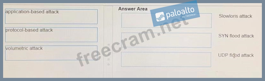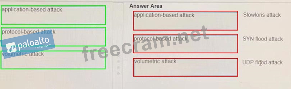 Based on PANW Best Practices for Planning DoS and Zone Protection, match each type of DoS attack to an example of that type of attack.