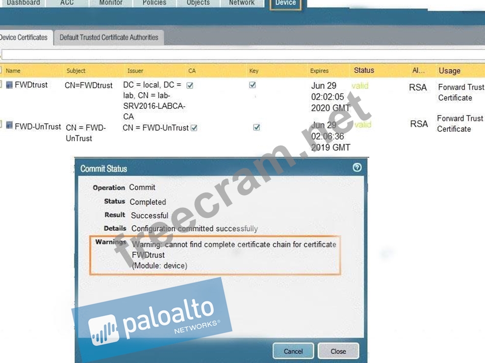 Question 62: An administrator pushes a new configuration from Panorama to...