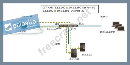 An administrator is using DNAT to map two servers to a single public IP address. Traffic will be steered to the specific server based on the application, where Host A (10.1.1.100) receives HTTP traffic and Host B (10.1.1.101) receives SSH traffic.