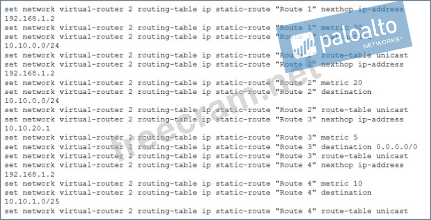 Route 4 matches destination IP range "10.10.1.0/25", which includes 10.10.1.0 to 10.10.1.127.
