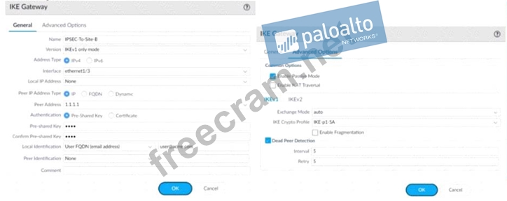 The image shows an IKE Gateway configuration where Site B is set to IKEv1 only mode, and passive mode is not enabled. For dynamic peering to work when Site A is using a DHCP assigned address: * Passive mode on Site A needs to be disabled. In passive mode, the firewall will not initiate the IKE negotiation and will only respond to negotiation requests from the peer. Since Site A has a dynamic IP, it must be able to initiate the connection to Site B, which has a static IP. * Matching the IKE version between Site A and Site B is also necessary for successful IPSec tunnel establishment. Since Site B is set to IKEv1 only mode, Site A also needs to be configured to use IKEv1 to ensure that both sites are using the same version for the IKE negotiation process. NAT Traversal is used when there are NAT devices between the two endpoints, but there's no indication that this is the case here. Additionally, local identification on Site A is not necessarily related to the issue with dynamic peering not working.