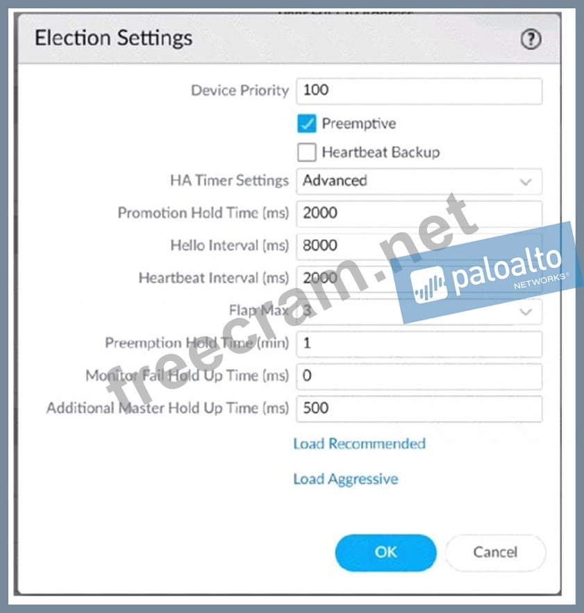 Question 56: An engineer reviews high availability (HA) settings to under...