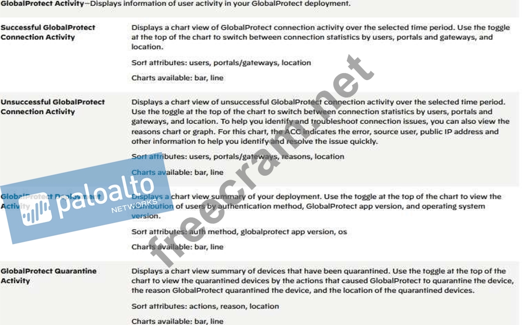 Which two are valid ACC GlobalProtect Activity tab widgets? (Choose two.)