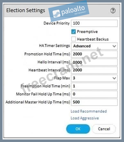 An engineer reviews high availability (HA) settings to understand a recent HA failover event Review the screenshot below.