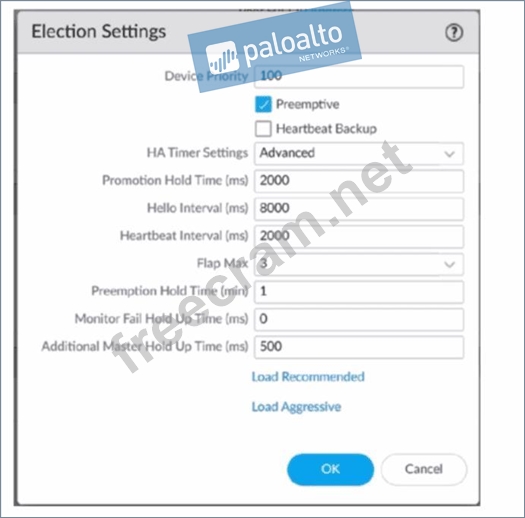 An engineer is reviewing the following high availability (HA) settings to understand a recent HAfailover event. Which timer determines the frequency between packets sent to verify that the HA functionality on the other HA firewall is operational?