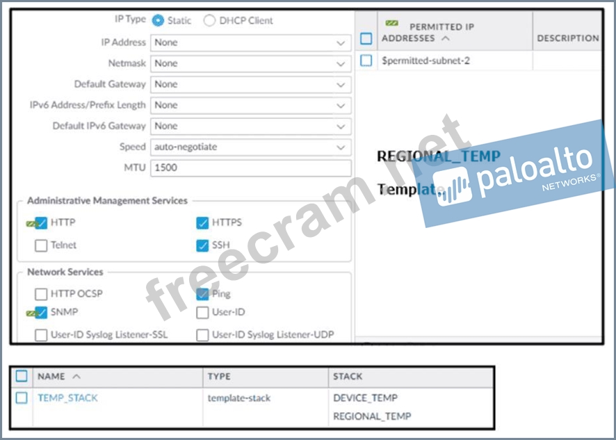 Based on the screenshots above, and with no configuration inside the Template Stack itself, what access will the device permit on its Management port?