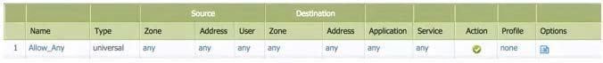 She first ensures that ail traffic is allowed between zones based on the following security policy rule: