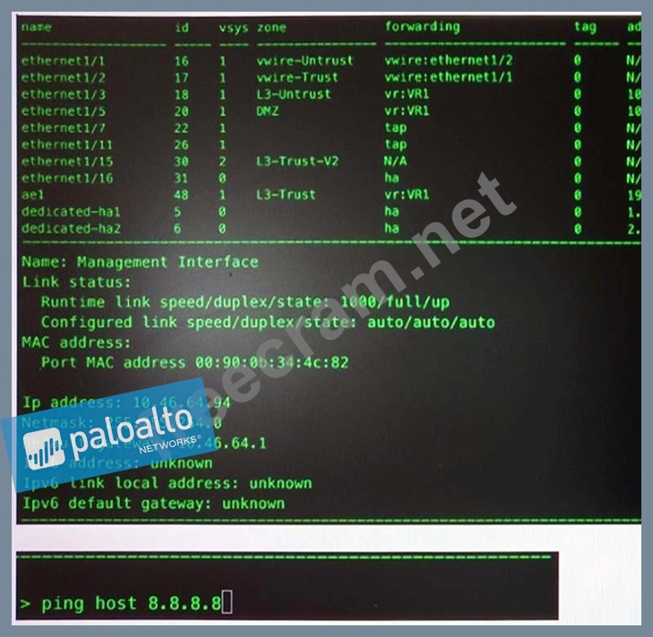 Question 20: A host attached to ethernet1/4 cannot ping the default gatew...