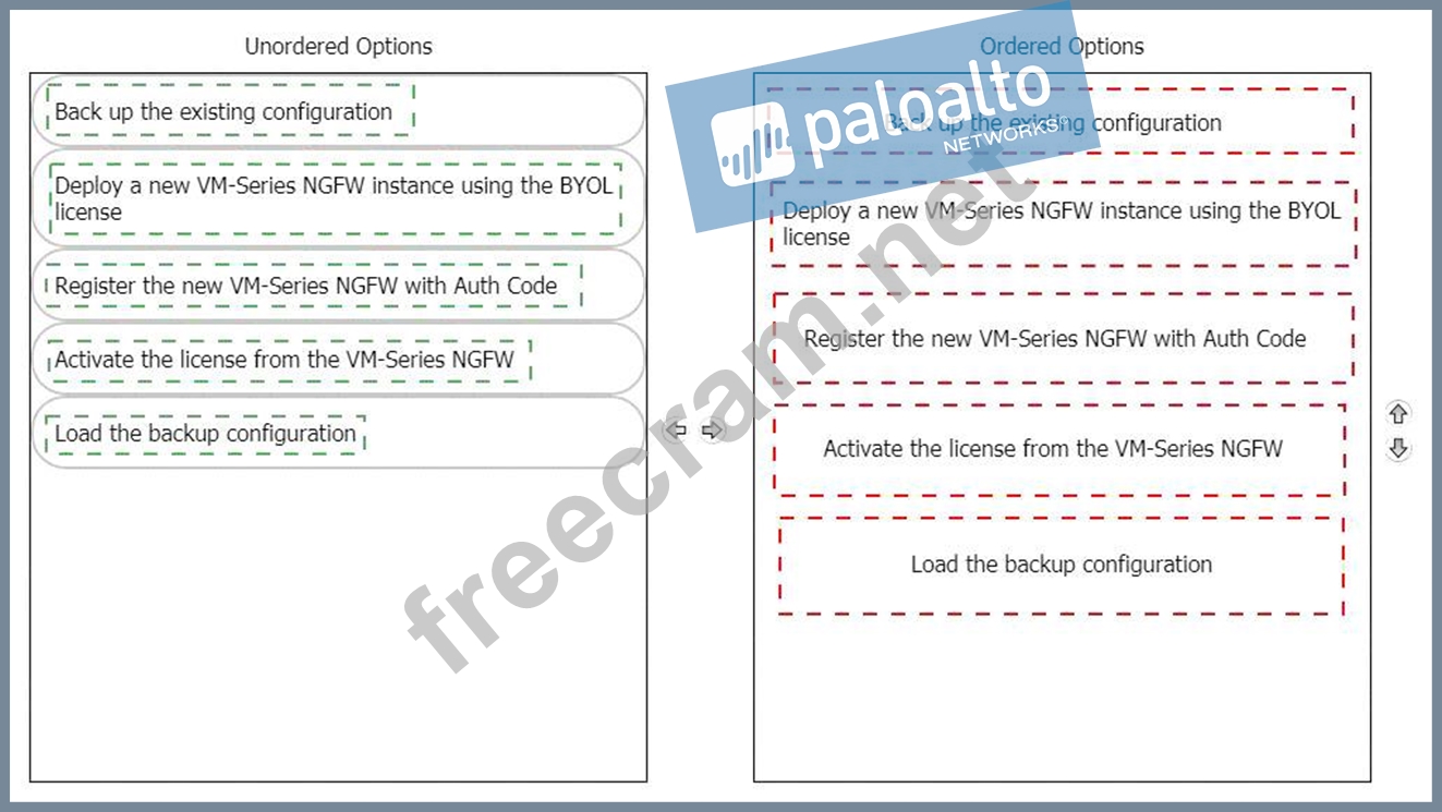 A customer has deployed a VM-Series NGFW on Amazon Web Services using a PAYG license. What is the sequence required by the customer to switch to a BYOL license?