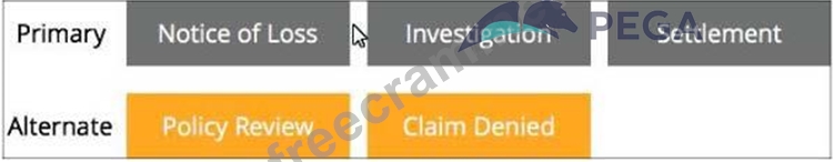 After an auto accident claim is submitted, a claims adjuster is assigned to the case. The claims adjuster reviews the policy of the claimant to verify coverage. The claims adjuster then begins an accident investigation. If the claim is denied, an appeals process is initiated. When the investigation is complete, a determination of fault is made, and then the accident claim is settled. Select the case life cycle design that most closely follows the guidelines for identifying and naming stages. A: B: C: D: