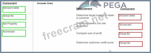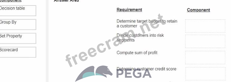 You are a decisioning architect on a next-best-action project and are responsible for designing and implementing decision strategies Select each component on the left and drag it to the correct requirement on the right.