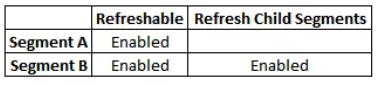 Which configuration is needed to make sure that Segment B is automatically refreshed when Segment A is