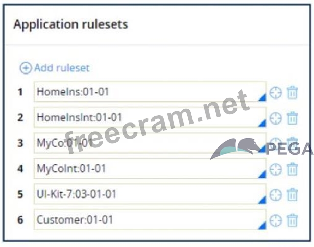 In the following example, the Homelns, Homelnslnt, and Customer rulesets are configured for application validation. MyCo and MyCoInt are configured for ruleset validation. MyCo lists MyCoInt and Customer as its prerequisites, and the prerequisite for MyCoInt is Pega-ProcessCommander. Which of the following statements is correct?