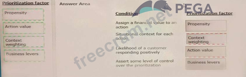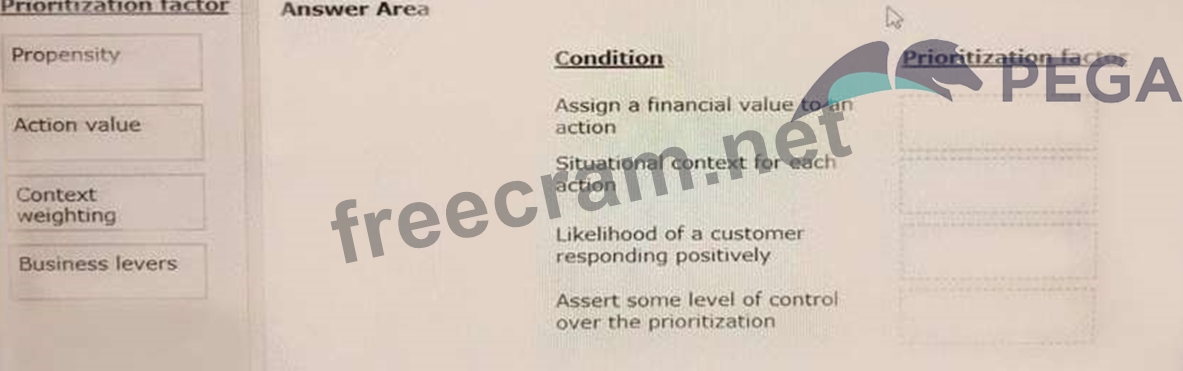 Select each prioritization factor on the left and drag it to the correct condition on the right.