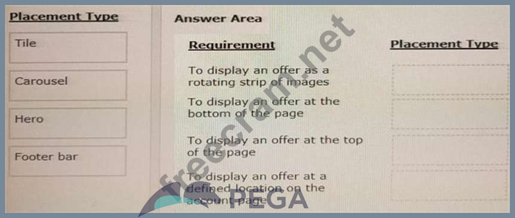 Select each placement type on the left and drag it to the correct requirement on the right.