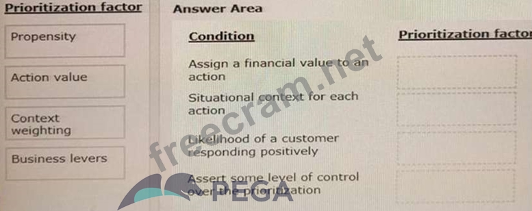Select each prioritization factor on the left and drag it to the correct condition on the right.
