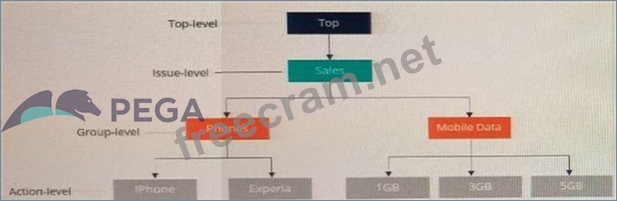 MyCo, a mobile company, uses Pega Customer Decision Hub to display offers to customers on its website. The company wants to present more relevant offers to customers based on customer behavior. The following diagram is the action hierarchy in the Next-Best-Action Designer.