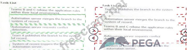 To ensure all development teams are working with the latest version of shared rule base, select and move all of the following tasks to the tasks List Order column and place them in the correct order.