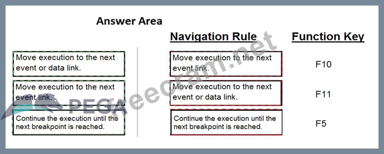 In the Answer Area, drag each navigation rule on the left to its correct function key.