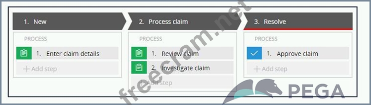 An insurance claim case type is defined as follows: If the Review claim step is configured to set the status to Pending-Investigation, when is the status of the case set to Pending-Investigation?