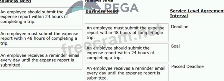Select each Business Need on the left and drag it to the appropriate Service Level Agreement Interval on the right.