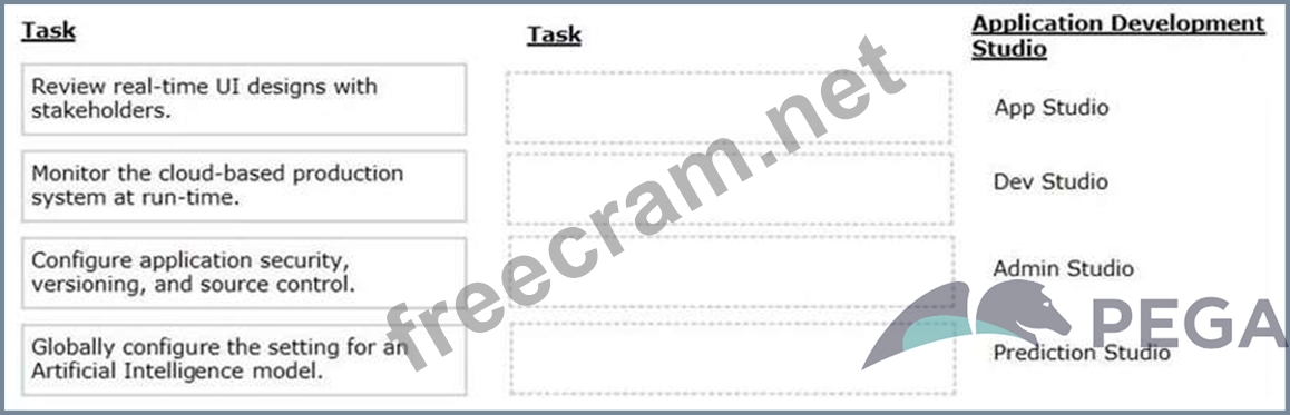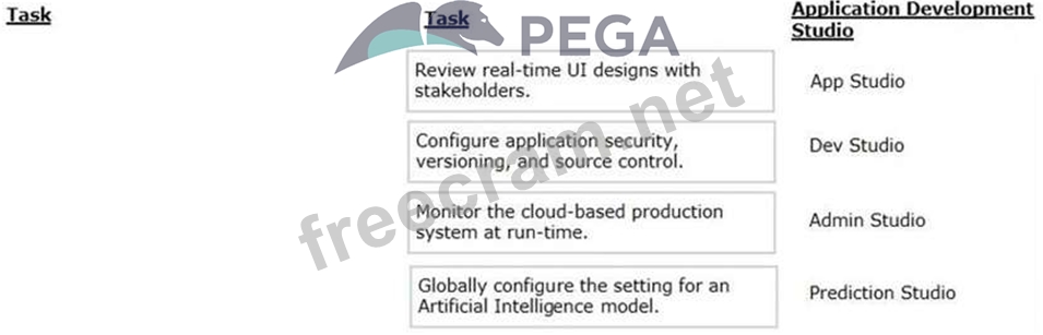 Select each task on the left and drag it to the corresponding Application Development Studio on the right, where the task can be completed.