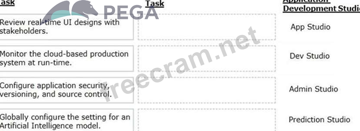 Select each task on the left and drag it to the corresponding Application Development Studio on the right, where the task can be completed.