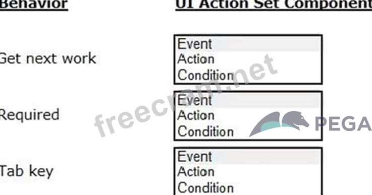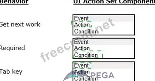 Select the corresponding user interface (UI) action set component for each behavior in the Answer area.