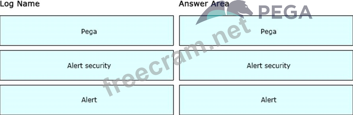 In the Answer Area, drag each log name on the left to its intended purpose on the right.