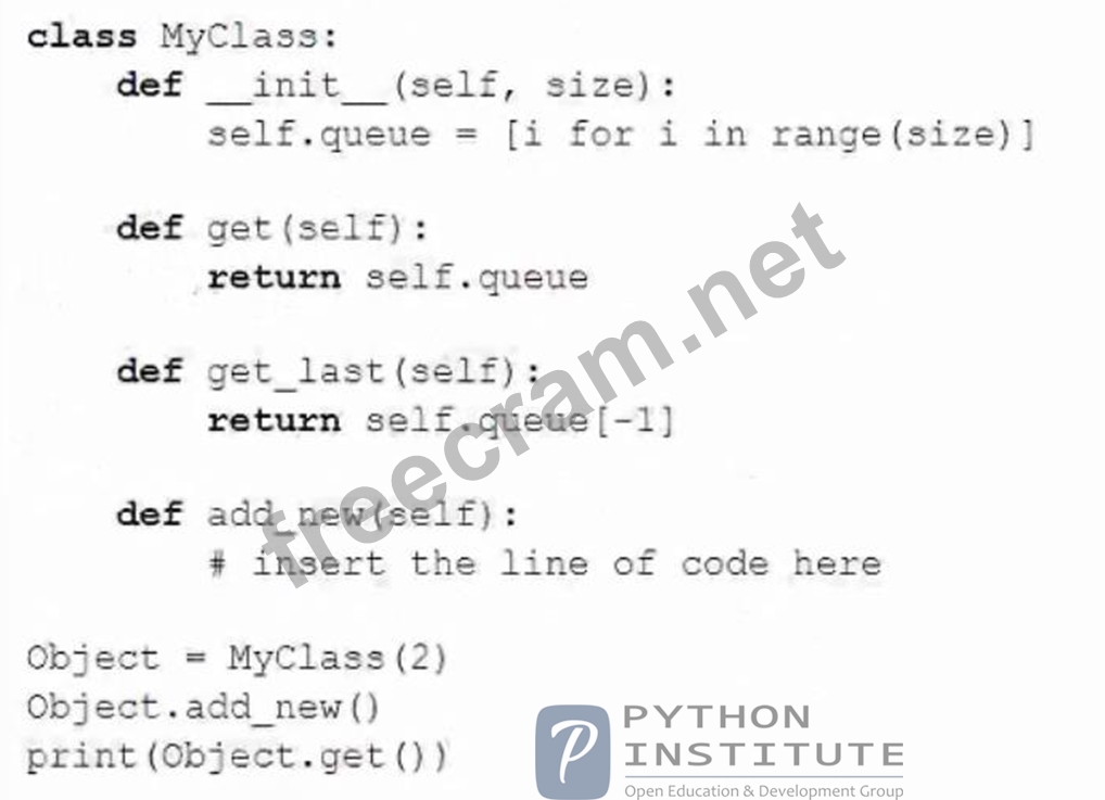 Which of the following lines of code will work flawlessly when put independently inside the add_new () method in order to make the snippet's output equal to [0, 1, 21 ? (Select two answers)
