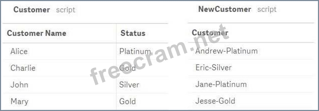 Refer to the exhibit. The data architect informs the business analyst of an additional data source for Customer data. The values are stored in a different format. Users do NOT need to display values in the current format for the NewCustomer. The business analyst has split the 'Customer' column into two new fields in the New Customer table. Which steps should the business analyst take to finish integrating the new customer records into the existing visualizations?